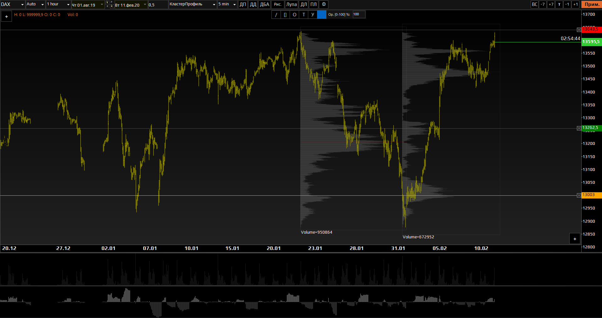 Дакс продолжает уже длительное время торговаться в широком боковике. Сейчас цена находится у верхней границы 13643 и мы ожидаем снижение цены минимум к средине диапазона 13262. Стоит обратить внимание, что при подходе к верхней границе отсутствуют торговые объемы, что указывает на слабость покупателей. Также важно помнить, что ключевая поддержка находится на психологической отметке 13000.