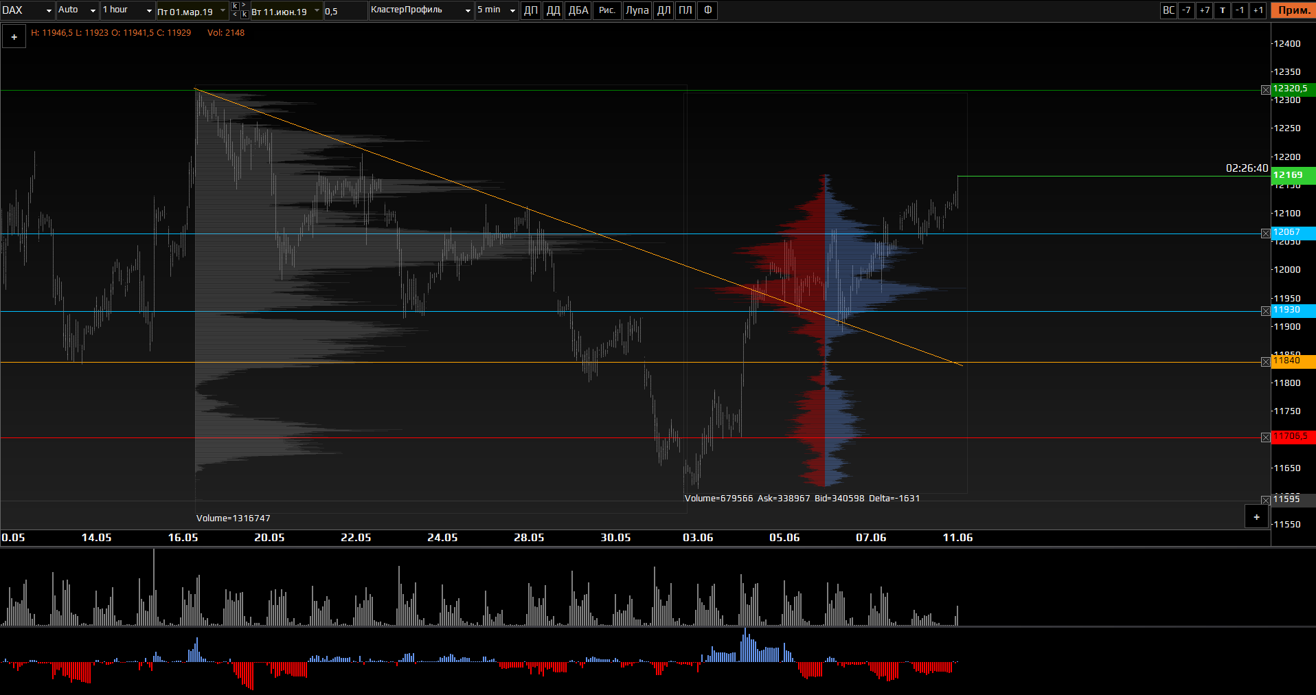 Фондовые рынки продолжают уверенный рост и стоит этим воспользоваться для спекулятивного заработка. Ключевой уровень объемного накопления текущей тенденции роста находится в диапазоне 12067 – 11930, при этом также стоит помнить о уровнях поддержки 11840 и 11700! Мы ожидаем дальнейший рост DAX.30 с целевой отметкой в районе хая 12320!