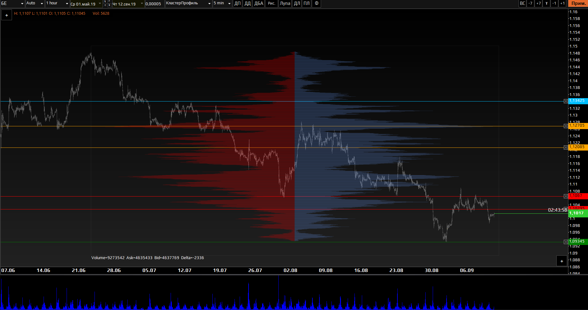 Сегодня будет происходить плановое заседание ЕЦБ по процентной ставке и пресс-конференция главы. Таким образом, сегодня будет крайне волатильный день для данной валюты. Ключевое ближайшее объемное сопротивление находится в диапазоне 1,1067 – 1,1030, а поддержка 1,0934. В случае пробоя указанного сопротивления вверх нас ждет восстановление котировок к уровню 1,1200.