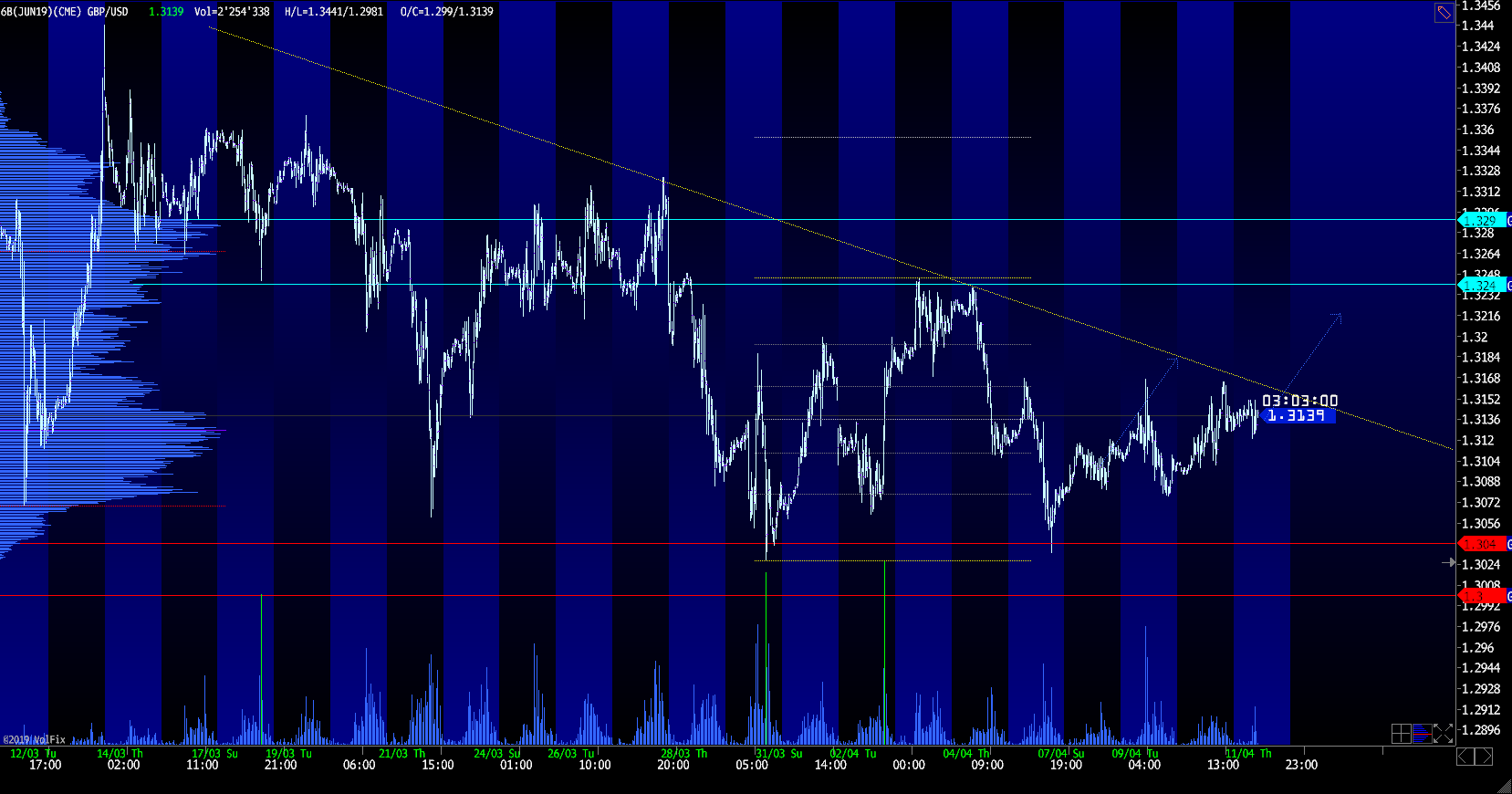 На фоне открытого вопроса Brexit фьючерсы на фунт были под давлением в последние время. Учитывая, что вопрос брексита переносится на осень, инструмент имеет неплохие шансы частично восстановиться. Ключевая зона поддержки покупателей 1,3040 – 1,3000; при этом ближайший уровень сопротивления продавцов находится в диапазоне 1,3240 – 1,3290! Мы придерживаемся сценария из прошлого прогноза – рост инструмента с потенциальными целями 1,3200 и 1,3240.