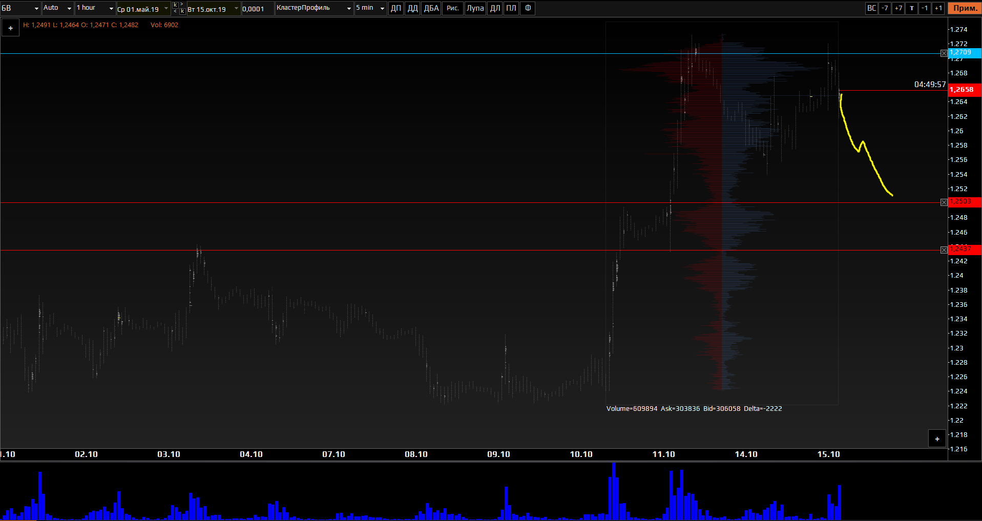После стремительного взлета котировок на прошлой неделе на позитивных новостях о Брексит сделке, британский фунт готов к локальной коррекции. Мы видим потенциал снижения котировок с целевыми уровнями в объемной зоне 1,2503 – 1,2437. При этом стоит обратить внимание на сопротивления по цене 1,2709.