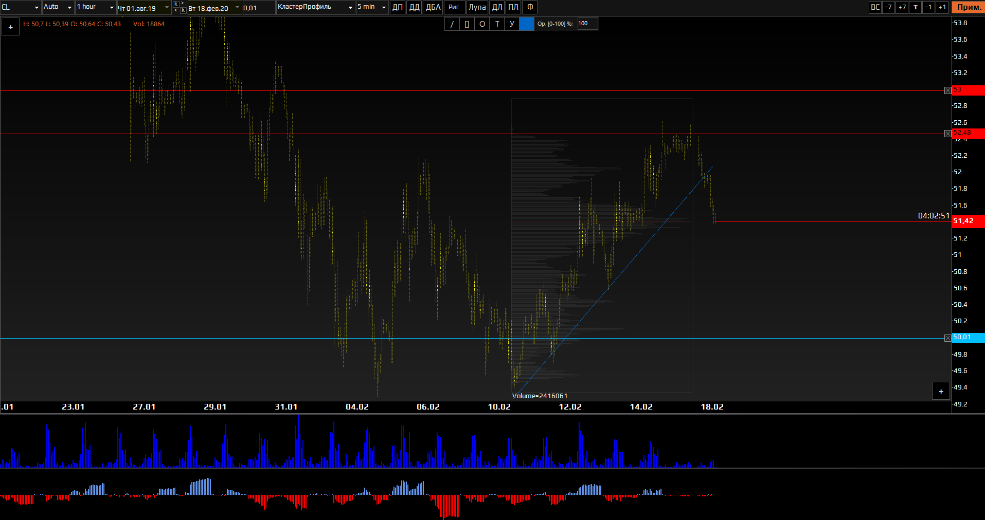 Товарные рынки остаются под давлением из-за эпидемии в Китае. Нефть частично корректировалась на прошлой неделе, но мы ожидаем, что падение продолжится в ближайшее время. Сопротивление находится в диапазоне 52,48 – 53,00, а поддержка на 50,00.