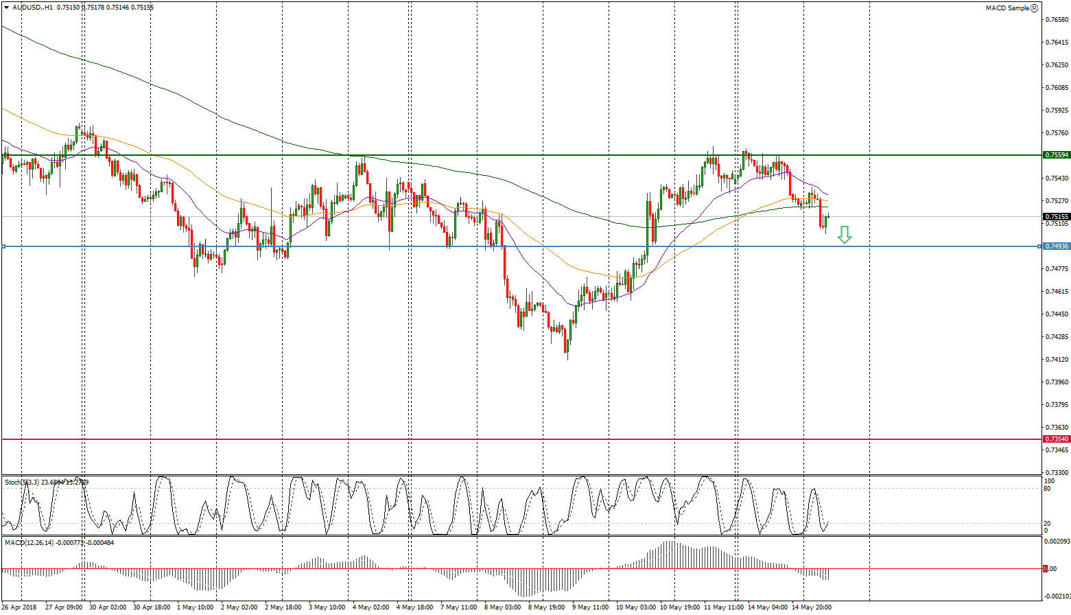 По состоянию на утро, 15 мая, ценовая отметка по валютной паре AUD/USD находится в диапазоне 0,7502 - 0,7516. Рассматриваем продажи, однако после пробития ближайшего уровня поддержки 0,7493.