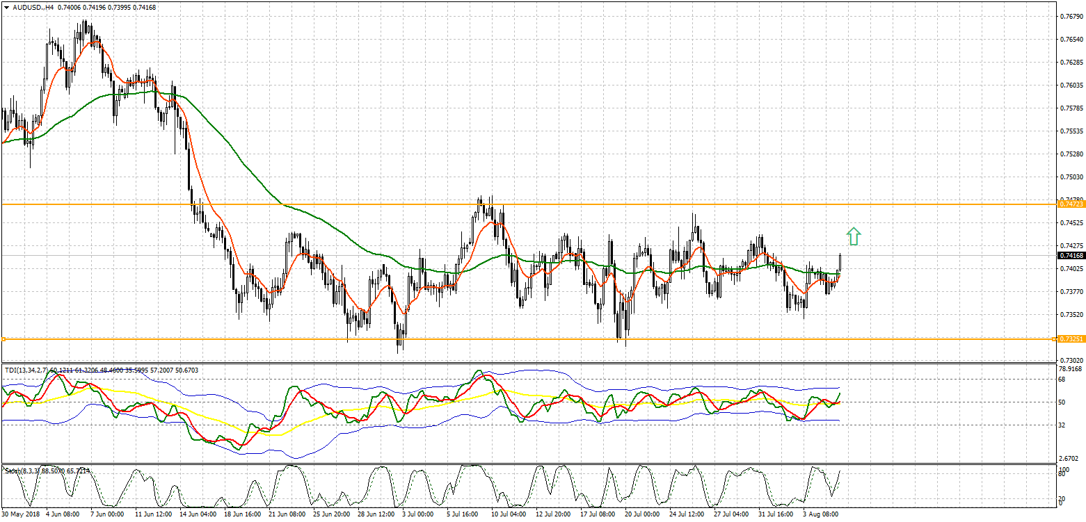 По состоянию на утро, 07 августа, ценовая отметка по валютной паре AUD/USD торгуется в диапазоне 0,7387 - 0,7401. Так как технически валютная пара пребывает в боковом канале, то рекомендуем торговать на пробой уровня сопротивления 0,7472.