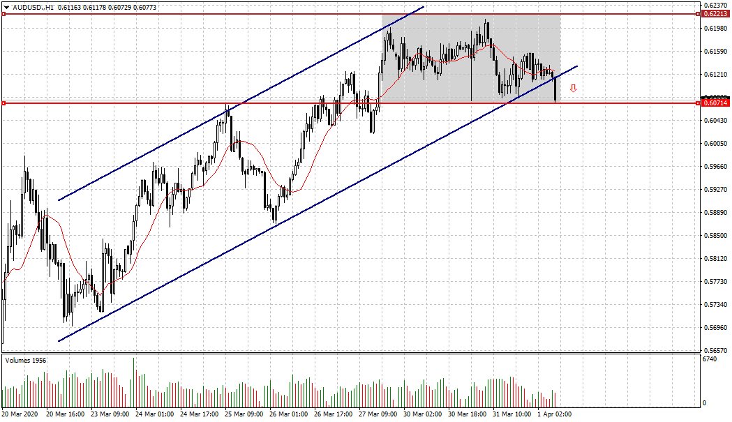 По состоянию на утро, 01 апреля, ценовая отметка по валютной паре AUD/USD торгуется в диапазоне 0,6074 - 0,6117. Рекомендуем дождаться пробития ближайшего уровня поддержки и после рассматривать открытие сделок на продажу.