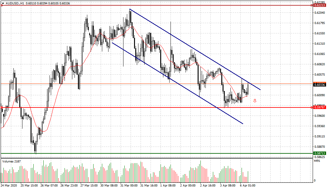 По состоянию на утро, 06 апреля, ценовая отметка по валютной паре AUD/USD торгуется в диапазоне 0,6010 - 0,6039. Рекомендуем дождаться пробития ближайшего уровня поддержки и после рассматривать открытие сделок на продажу.