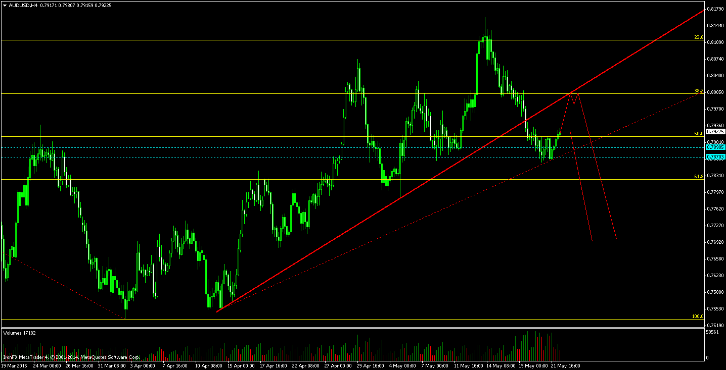 AUD/USD пробил нашу линию поддержки восходящего тренда, таким образом дал сигнал к возможному развороту движения. Я больше отталкиваюсь от продажи данного инструмента. Сегодня цена может протестировать уровень сопротивления 0.8000 и после этого с новыми силами уйти вверх. Второй сценарий, это уход цены в низ с текущих уровней. Первой целью в таком случае будет выступать уровень поддержки 0.7870.