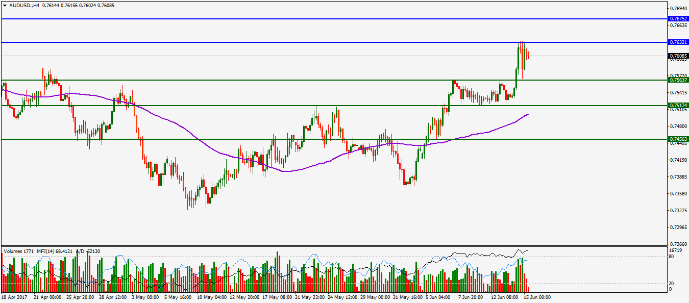 Австралийский доллар вырос против USD, на фоне позитивных данных по рынку труда в Австралии и повышению процентных ставок от FOMC. Как и прогнозировалось, руководство ФРС приняло решение повысить процентную ставку до 1,25%. В ходе своей пресс-конференции председатель ФРС Джанет Йеллен заявила, что экономика: “Чувствует себя очень хорошо, и постепенное повышение процентных ставок будет уместным”. Помимо этого, вчера, министерство труда США сообщило, что потребительские цены немного снизились в мае, что свидетельствует о том, что инфляционное давление остается слабым. Такая ситуация может также влиять на дальнейшие планы ФРС по повышению ставки в этом году. Индекс потребительских цен снизился с учетом сезонных колебаний на 0,1% в мае. Помимо этого, дополнительную поддержку AUD оказали данные по рынку труда Австралии. Как сообщило австралийское бюро статистика, уровень безработицы в мае снизился до 5,5%, что оказалось значительно ниже прогноза.