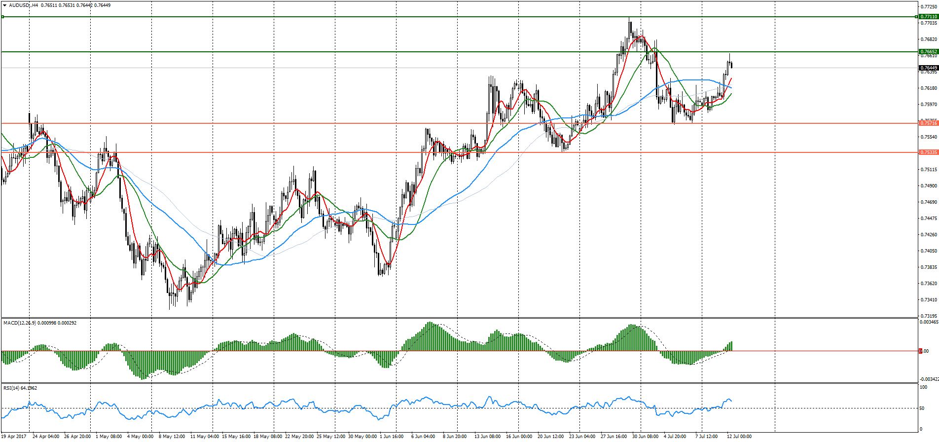 По состоянию на утро, 12 июля, AUD/USD торгуется в диапазоне 0,7645 - 0,7653. Ближайшей целью выступает уровень сопротивления 0,7665. В случае пробития уровня вверх, стоит открывать ордера на buy.