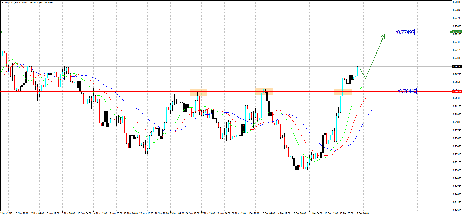 Валютная пара AUD/USD пробила и зафиксировалась над уровнем сопротивления 0,7644.