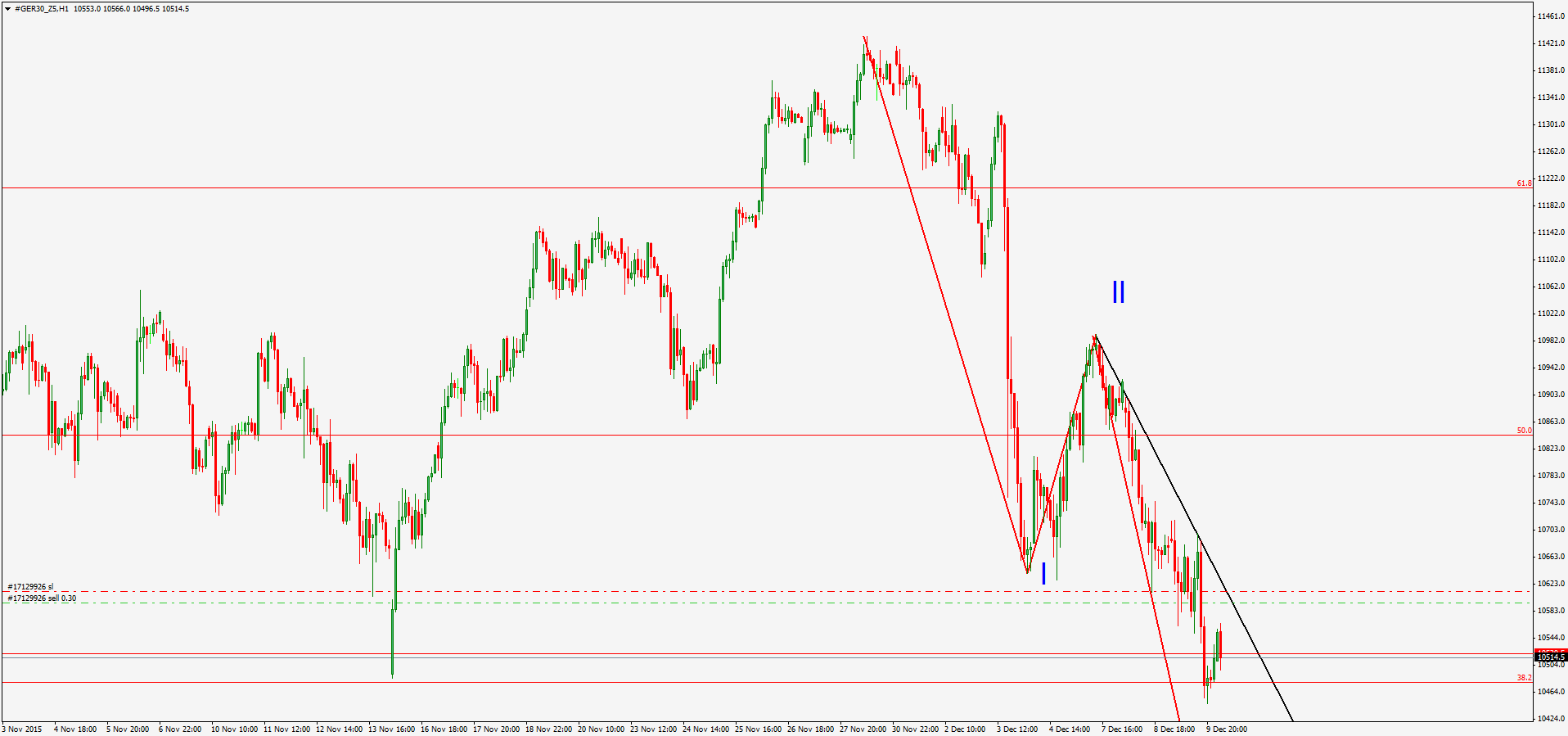 Немецкий DAX30 во время торговой сессии среды показал хорошую динамику снижения, встретивши сопротивление на отметке 10445. Индекс находится под давлением и возможность для продолжения падения присутствует.