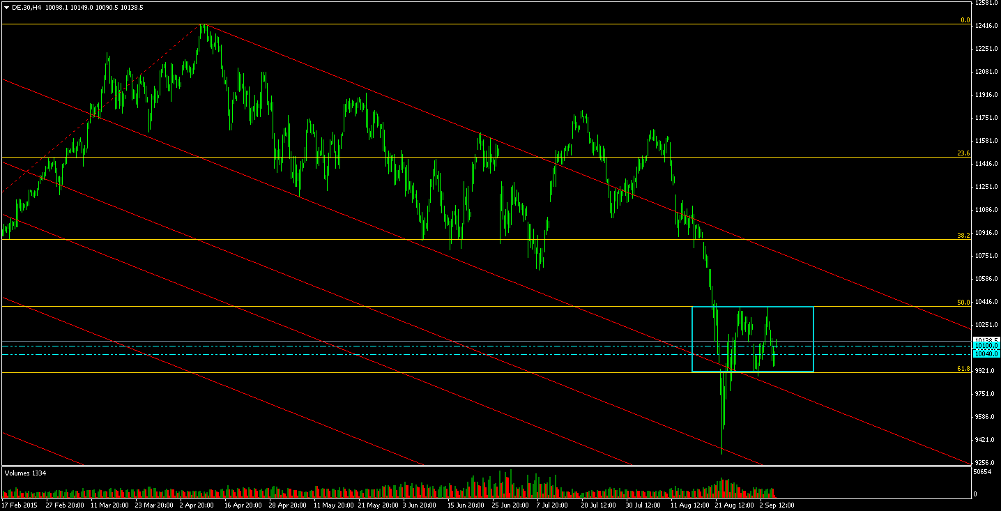 Немецкий индекс DAX после резкого снижения и небольшой коррекции в конце прошлого месяца плавно перешел в консолидацию. Цена на индекс торгуется в диапазоне 10380 – 9910, сохраняя общую динамику нисходящего тренда.
