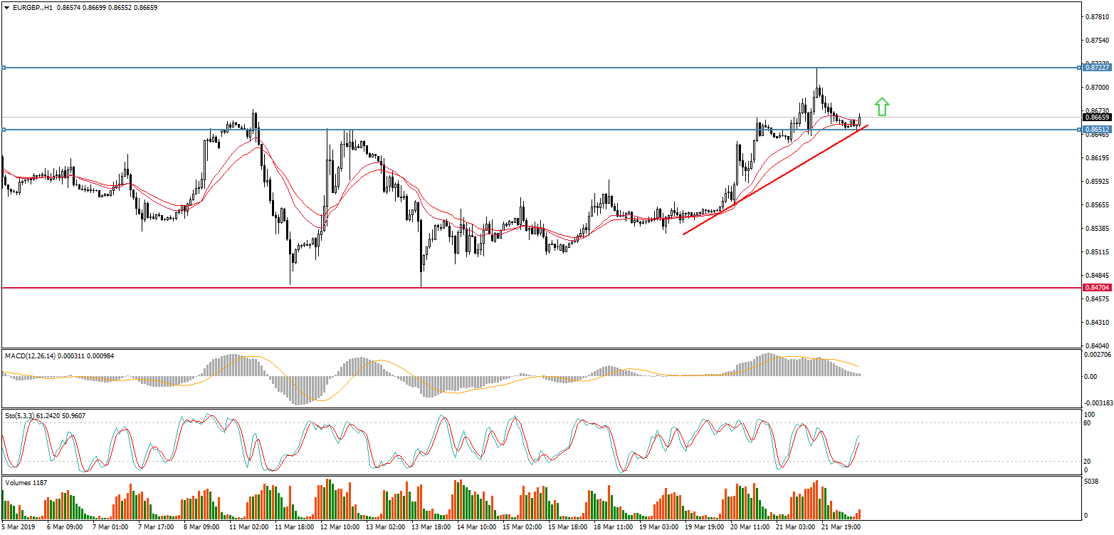 EUR/GBP пребывает в рамках восходящей тенденции. Комитет по монетарной политике Банка Англии единогласно принял решение сохранить ставки на отметке 0.75%, всего за 8 дней до официальной даты выхода из ЕС. Тереза Мэй обратилась к ЕС за отсрочкой, и поэтому центробанк подчеркнул, что экономические перспективы будут зависеть от времени выхода Британии из ЕС.