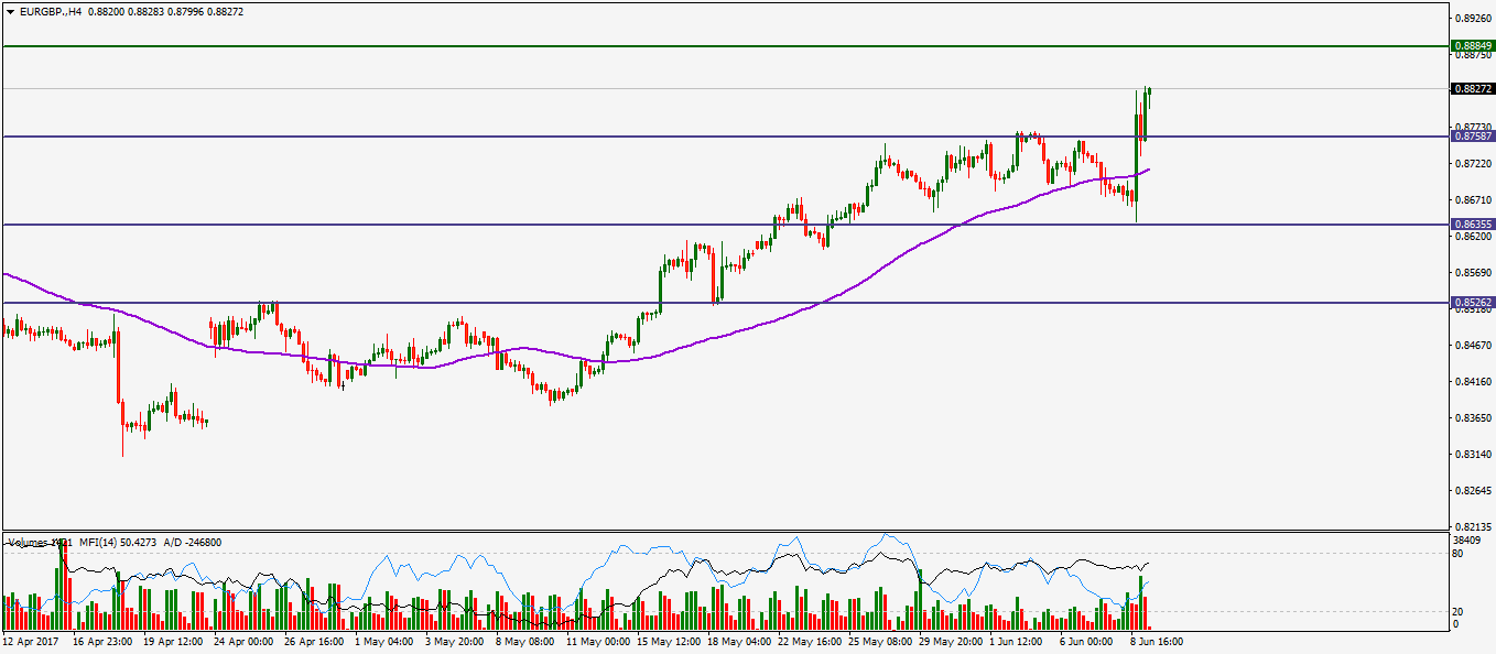 Евро продолжает дорожать против британской валюты, после оглашения первых результатов голосования на досрочных парламентских выборах в Британии, которые состоялись вчера, 8 июня. По результатам экзит-полов, победу на выборах одержала Консервативная партия, которую возглавляет действующий премьер-министр Королевства Тереза Мэй, однако они теряют в парламенте абсолютное большинство. Так, Тори получат в Палате общин 314 мест – на 17 меньше, чем в предыдущем составе парламента. Кроме того, лейбористы получили 266 мест (на 34 мандата больше), а либеральные демократы – 14 мест. Однако, согласно результатам, ни одна из партий не получила большинства в парламенте. По мнению экспертов, такие итоги свидетельствуют о призрачном будущем Мэй на посту премьера. Кроме того, неясной остается и судьба Brexit, что в свою очередь вызвает опасения у инвесторов и демонстрирует негативную динамику британской валюты. Напомним, ранеебританский министр Дэвид Дэвис заявил, что Британия может отказаться от переговоров с евросоюзом по вопросу выхода Британии из состава ЕС, уточнив, что правительство готово пойти на такой шаг, если Брюссель будет настаивать на требовании выплатить 100 млрд. евро. Ранее, глава Еврокомиссии Жан-Клод Юнкер оценивал стоимость выхода Британии из ЕС в размере 60 млрд евро, однако на моменте, из-за жесткой позиции Германии и Франции, эта сумма может увеличиться до 100 млрд. евро.