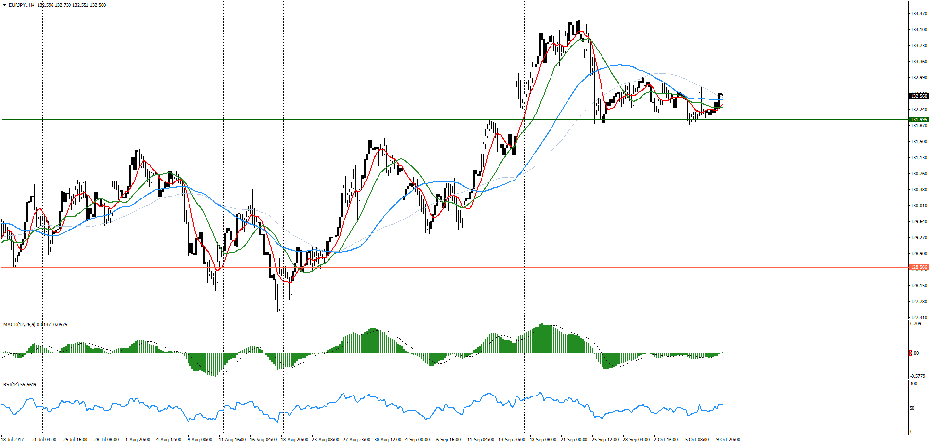 По состоянию на утро, 10 октября, EUR/JPY торгуется в диапазоне 132,55 - 132,73. В данный момент рассматриваем исключительно продажи. Ближайшей целью выступает уровень поддержки 131,99. Ордера на SELL стоит открывать после пробития уровня вниз.