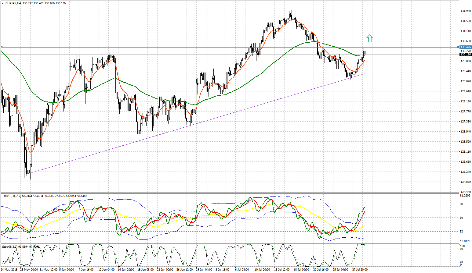 По состоянию на утро, 31 июля, ценовая отметка по валютной паре EUR/JPY торгуется в диапазоне 130,05 - 130,48. В данный момент рассматриваем покупки,так как технически валютная пара пребывает пребывает в стадии локального восходящего тренда. Входим в рынок после пробития уровня сопротивления 130,42.