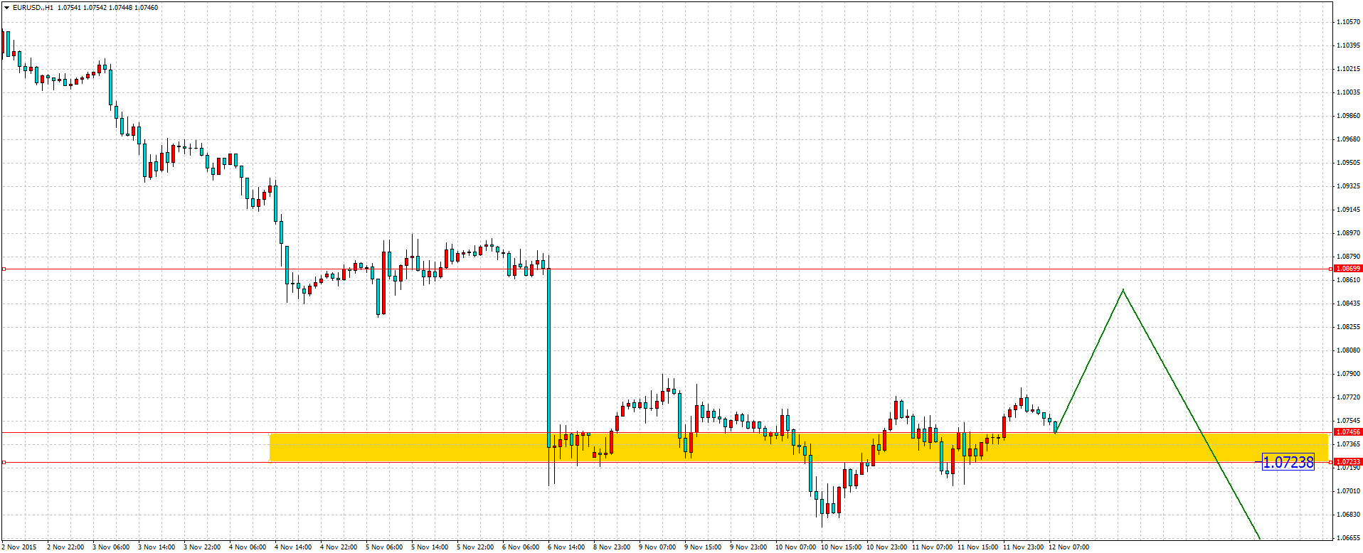 Валютная пара EUR/USD продолжает консолидироваться над уровнем поддержки 1,07238. Сегодняшний день будет наполнен весомыми фундаментальными событиями. Будет выступать глава Европейского Центрального Банка Марио Драги в 12:30 по киевскому времени, также сегодня состоится пресс-конференция председателя ФРС Джаннет Йеллен. Дальнейшее движение EUR/USD будет полностью зависеть от комментариев Драги по программе Количественного смягчения и слов Йеллен по повышению процентной ставки ФРС в декабре.