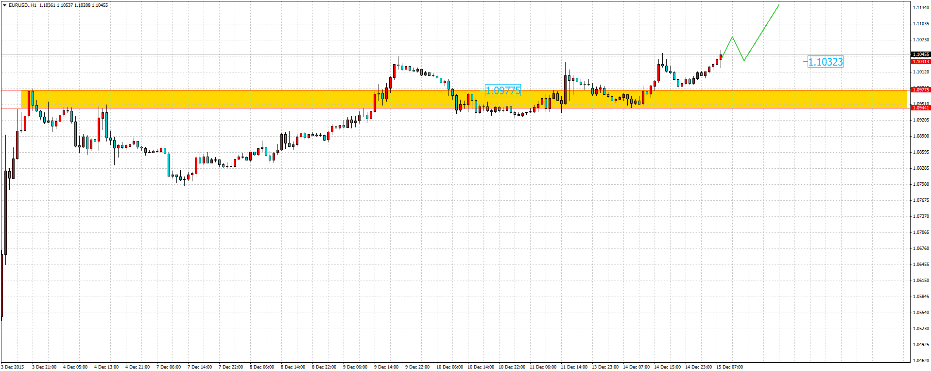 Как и прогнозировалось, валютная пара EUR/USD продолжила рост, пробив уровень сопротивления 1,1032. Подобное пробитие может вызвать очередную волну фиксирования прибыли крупных игроков, которые находятся в продажах, что приведёт к дальнейшему укреплению EUR.