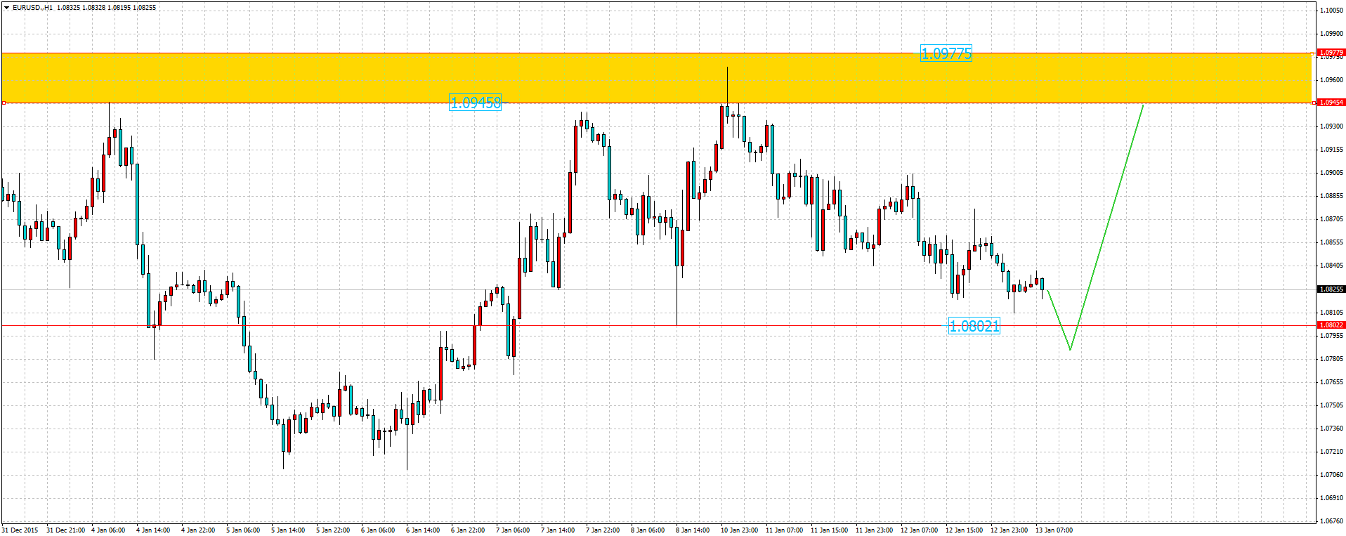 Валютная пара EUR/USD приближается к нижней границе диапазона бокового движения – уровню поддержки 1.0802. Есть все основания предположить, что и в этот раз цена встретит объёмное сопротивление и продолжит рост к уровню сопротивления 1,0977, следовательно, при отскоке цены от уровня, стоит искать возможности для входа в «лонг».