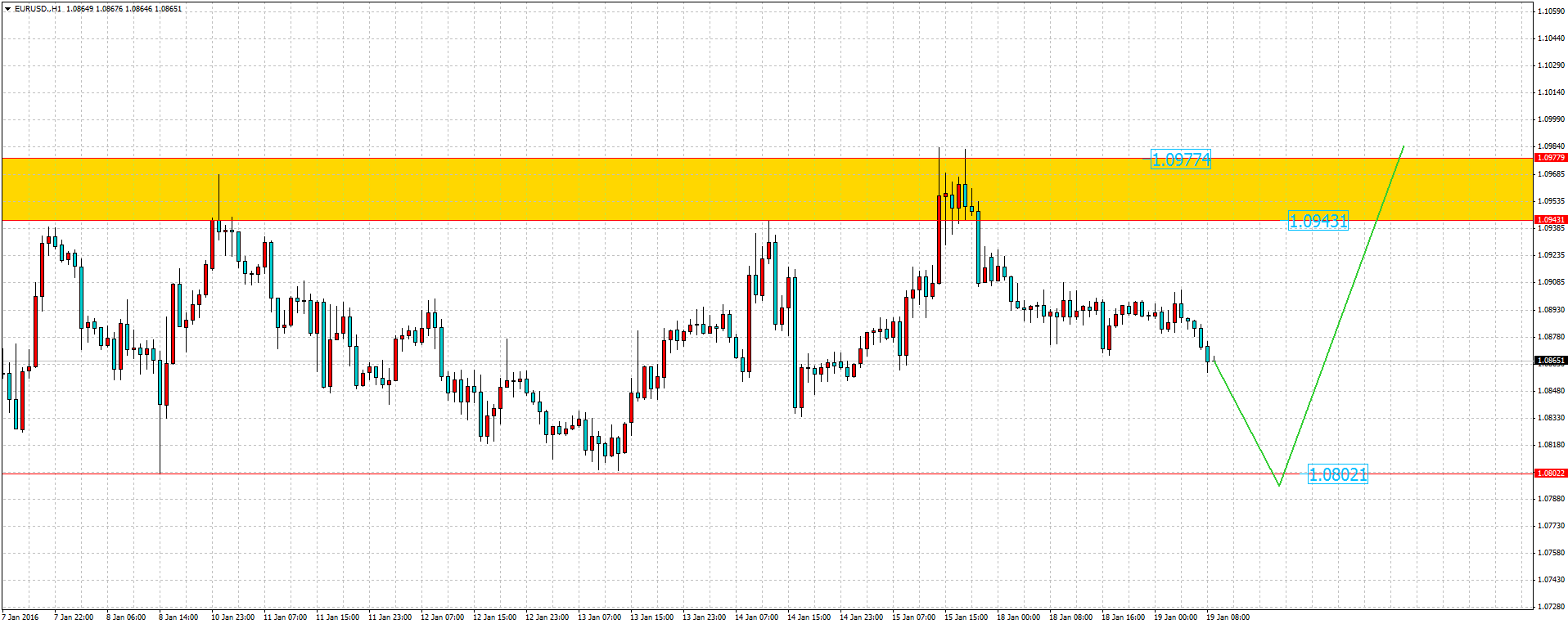 Валютная пара EUR/USD уже 6-ю неделю продолжает движение в боковом диапазоне. Подобное накопление объёмов перед заседанием ФРС, которое состоится 26-27 января, говорит нам о том, что выход с диапазона состоится именно по итогам заседания. Ранее представители ФРС озвучивали намерение и дальше повышать процентную ставку в 2016 году. Но, на мой взгляд, ФРС не станет спешить и на следующем заседании оставит ставку без изменений.