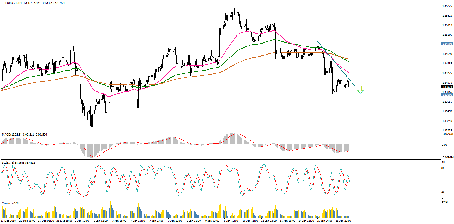 По состоянию на утро, 16 января, ценовая отметка по валютной паре EUR/USD торгуется в диапазоне 1,1391 - 1,1410. Рассматриваем продажи. Сигналом для входа в рынок, будет пробитие уровня поддержки 1,1380.