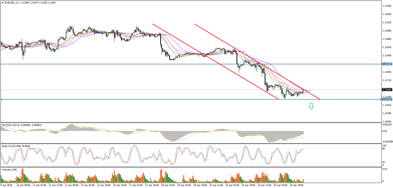 По состоянию на утро, 25 апреля, ценовая отметка по валютной паре EUR/USD торгуется в диапазоне 1,1133 - 1,1144. Рассматриваем продажи, сигналом для входа в рынок будет пробитие уровня поддержки 1,1117.