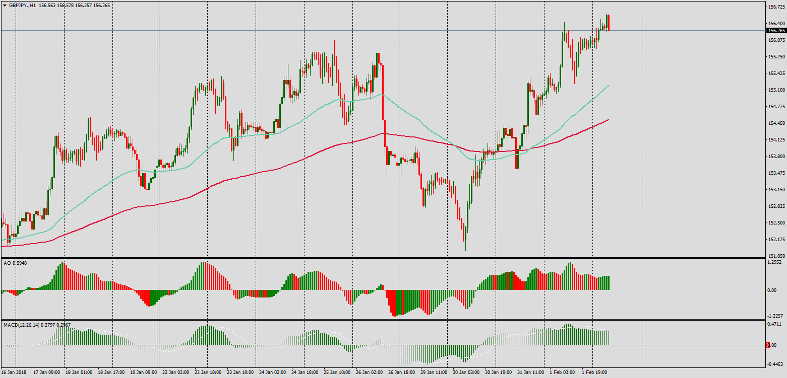 По состоянию на утро, 02 февраля, ценовая отметка по GBP/JPY находится в диапазоне 156,29 — 156,57. Рассматриваем покупки, так как валютная пара пребывает в состоянии локального восходящего тренда.