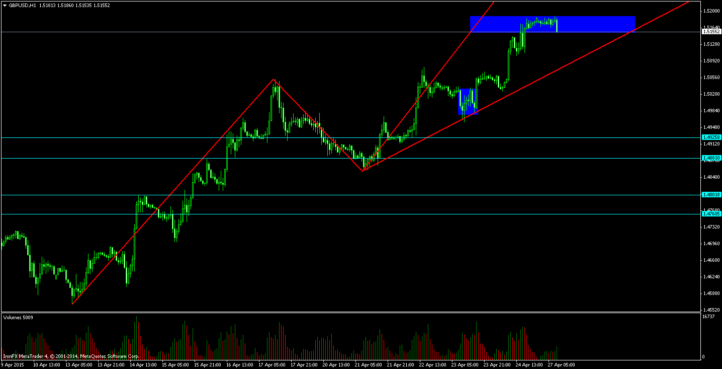 В пятницу GBP/USD продолжил свое движение вверх, оправдывая наши ожидания. За день фунт смог укрепиться почти на 150 pips. Цена нашла свое сопротивление на уровне 1.5190.
