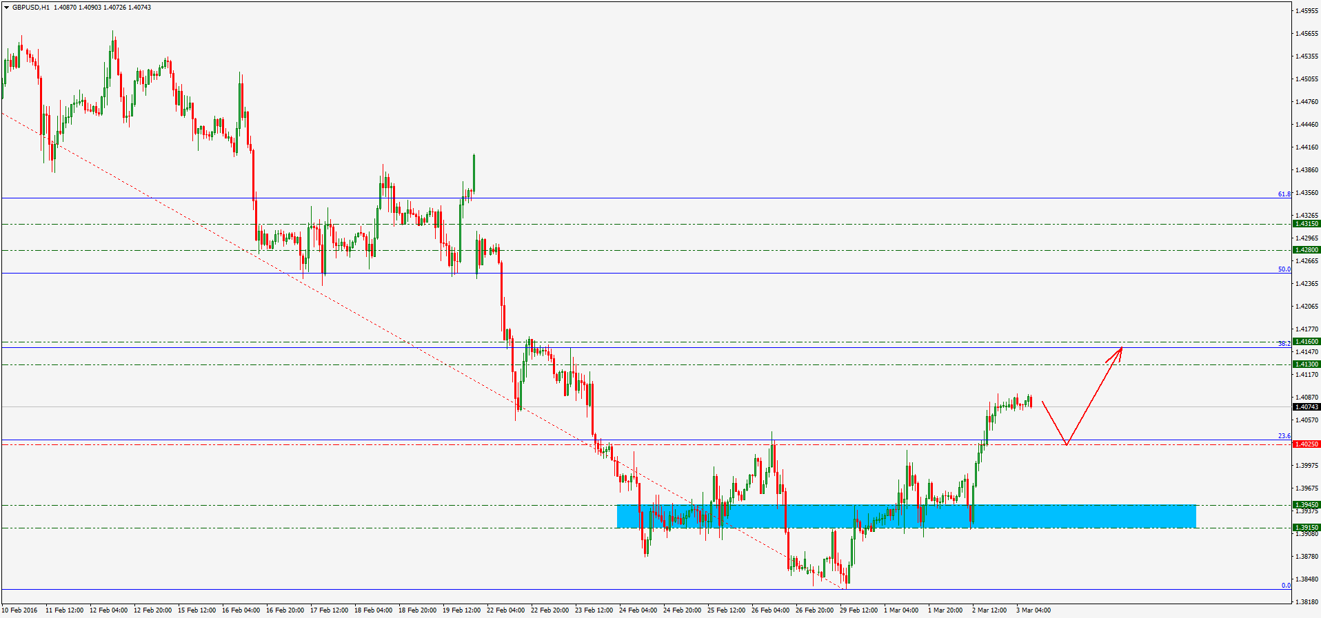 Валютная пара GBP/USD укрепилась во время торговой сессии в среду. Цена пробила уровень сопротивления 1.4025 и достигла прогнозируемой цели 1.4080. В данный момент на рынке присутствует покупатель н о глобальный тренд по-прежнему остается медвежий.