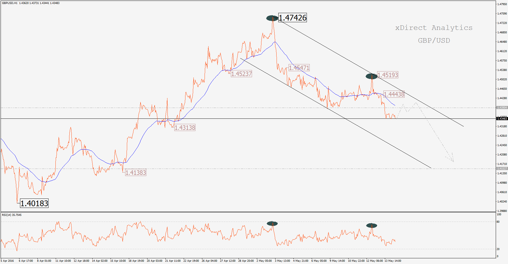 Валютная пара фунт/доллар торгуется в нисходящем канале после формирования нового максимума на отметке 1.4743. Учитывая текущую ситуацию по данному инструменту стоит рассматривать только короткие позиции. После остановки цены на текущих уровнях вероятно сформируется коррекция в район отметок 1.44-1.4420, что даст нам отличную возможность для открытия коротких позиций по тренду. Стоп приказы в таком случае стоит ставить на отметку 1.4480, а первой целью для фиксации прибыли выделить уровень 1.42.