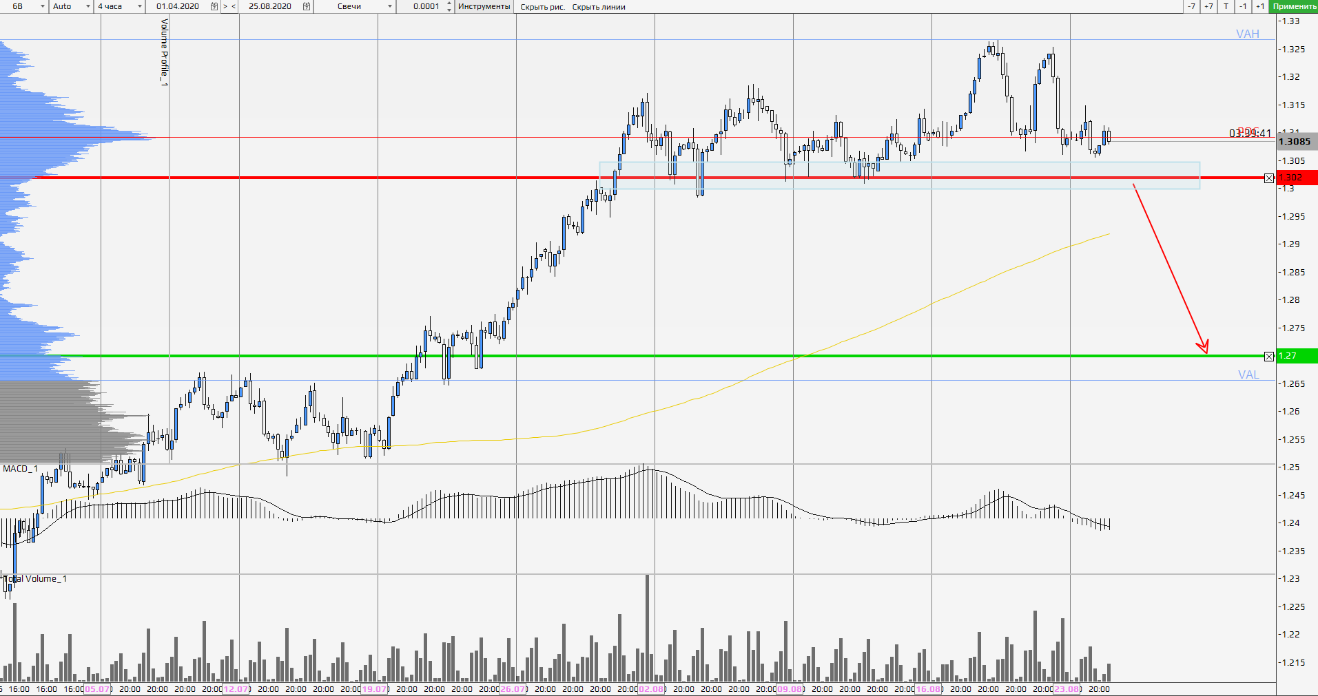 После стремительного роста в Июле фунт демонстрирует разгрузку в Августе. В итоге мы видим консолидация с ярко выраженной поддержкой 1,3020. Мы ожидаем пробой данной поддержки и коррекцию цены к уровню 1,2700. Стоит отметить, что для подтверждения пробоя мы ждем закрытие дневного бара ниже данной отметки.