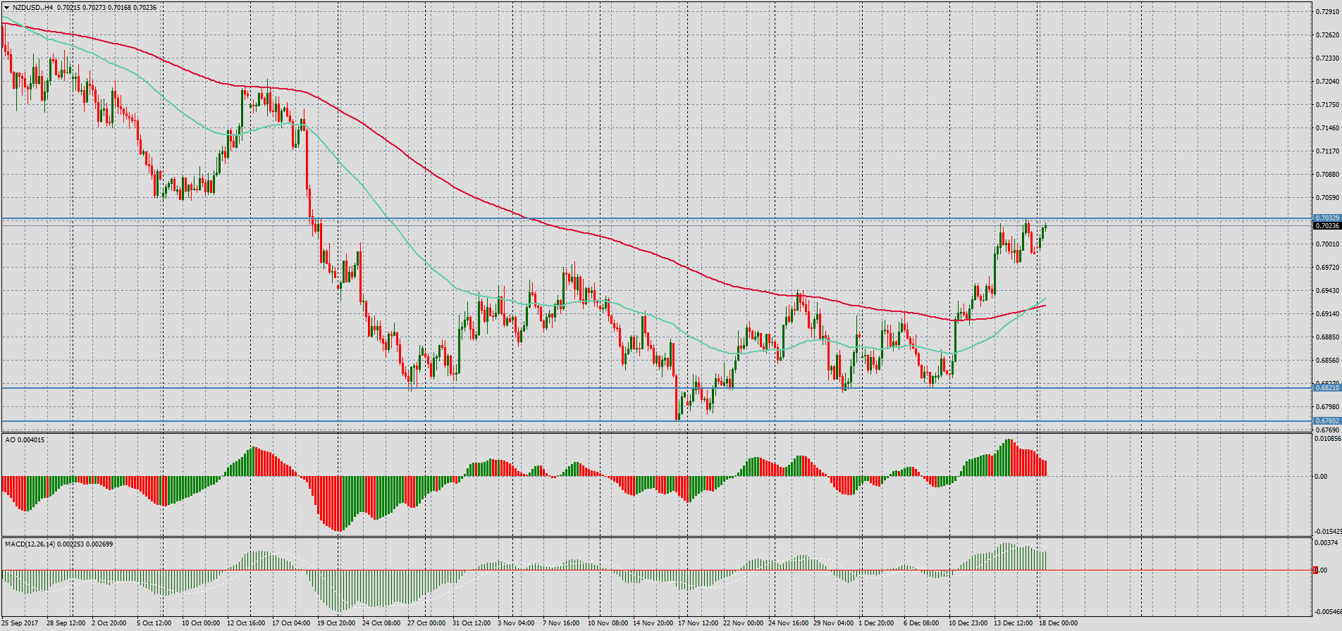 Валютная пара NZD/ USD выросла после публикации экономических данных по NZ и США. Как стало известно, ведущие республиканцы уверены, что на этой неделе Конгресс перейдет к утверждению налогового законопроекта и он будет подписан к концу недели. Однако рост доллара был ограничен, поскольку у инвесторов все же нет окончательной уверенности в принятии законопроекта. Помимо этого, потребительское доверие в Новой Зеландии продолжало снижаться в декабре к отметке в -1,5% (121,8), после снижения на -2.1% в октябре.