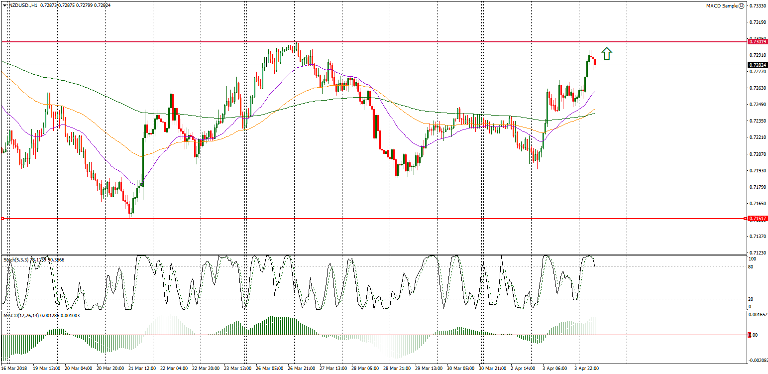 По состоянию на утро, 04 апреля, ценовая отметка по валютной паре NZD/USD находится в пределах 0,7281 — 0,7287. На текущий момент рассматриваем покупки, однако после пробития ближайшего уровня сопротивления 0,7301.