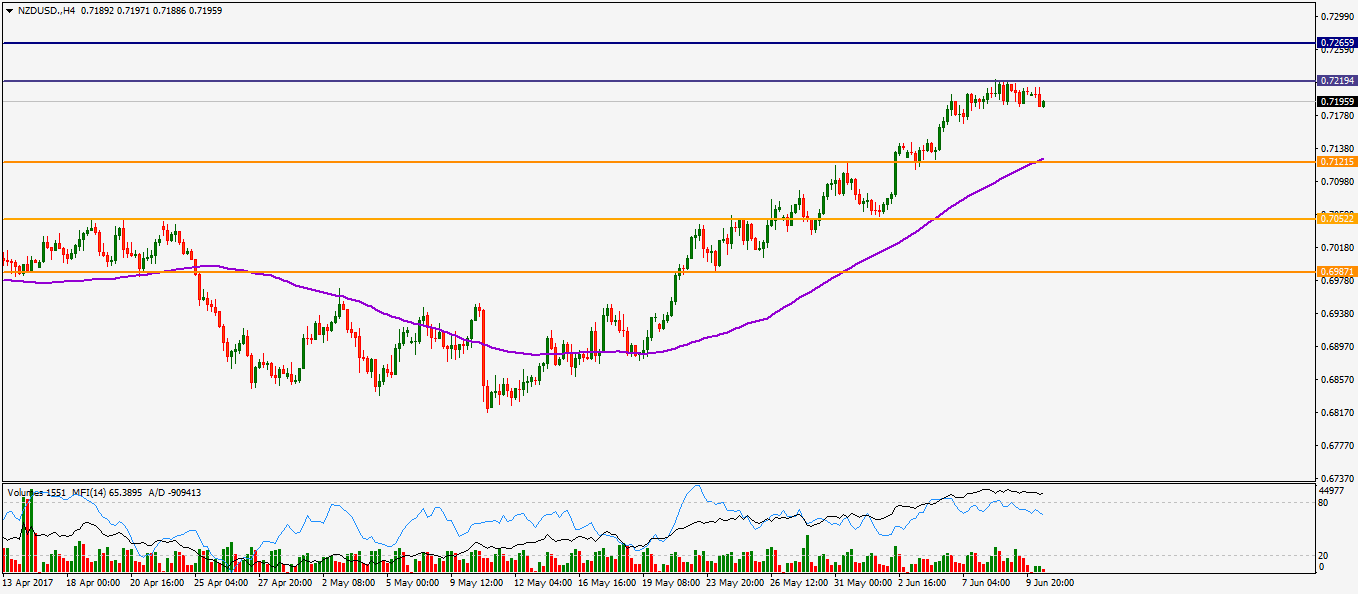 По состоянию на утро, 12 июня, NZD/USD торгуется в диапазоне 0,7188 — 0,7197. Ближайшей целью выступает уровень сопротивления 0,7219. Открытие ордеров на покупу стоит рассматривать после пробития уровня вверх.