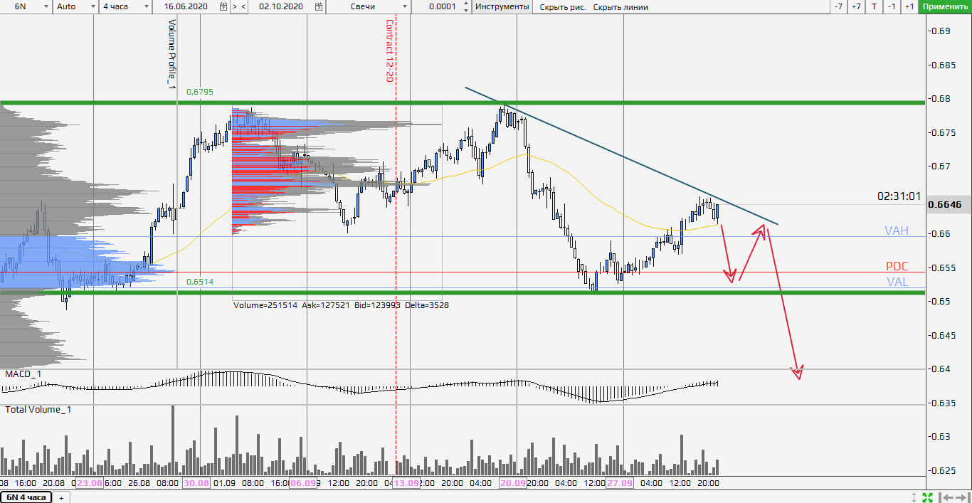 На текущий момент ценовая отметка инструмента находится в диапазоне 0,6618 - 0,6643. Для входа в рынок следует дождаться пробитие нижней границы поддержки, с последующей фиксацией цены под уровнем.