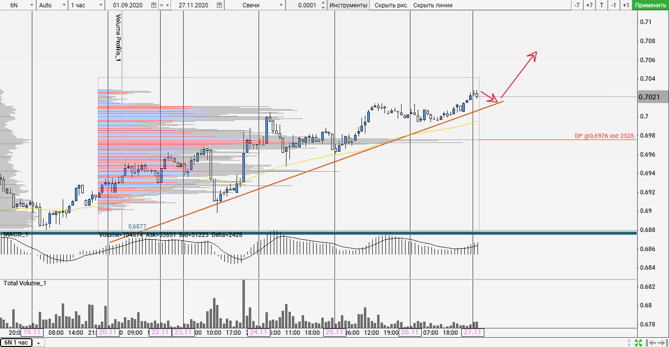 На текущий момент, ценовая отметка инструмента находится в диапазоне 0,7020 - 0,7028. Рекомендуем торговать от линии поддержки.