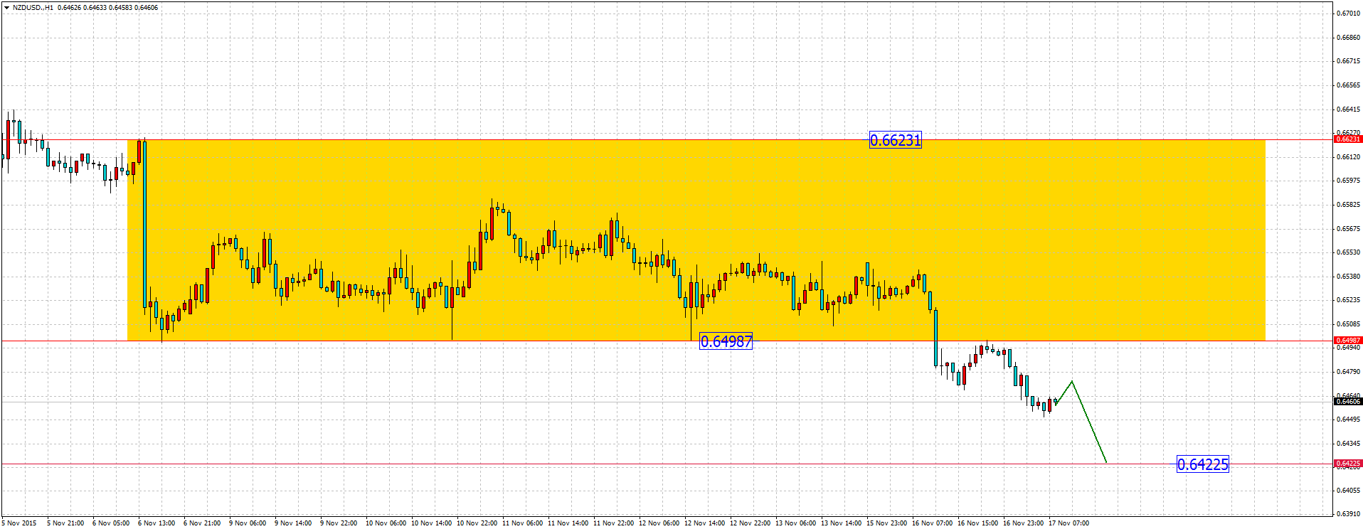 После публикации данных по инфляционным ожиданиям, валютная пара NZD/USD пробила и зафиксировалась под уровнем поддержки 0,6498. Учитывая силу доллара США, вероятнее всего нисходящее движение продолжится и стоит искать возможности для открытия коротких позиций.