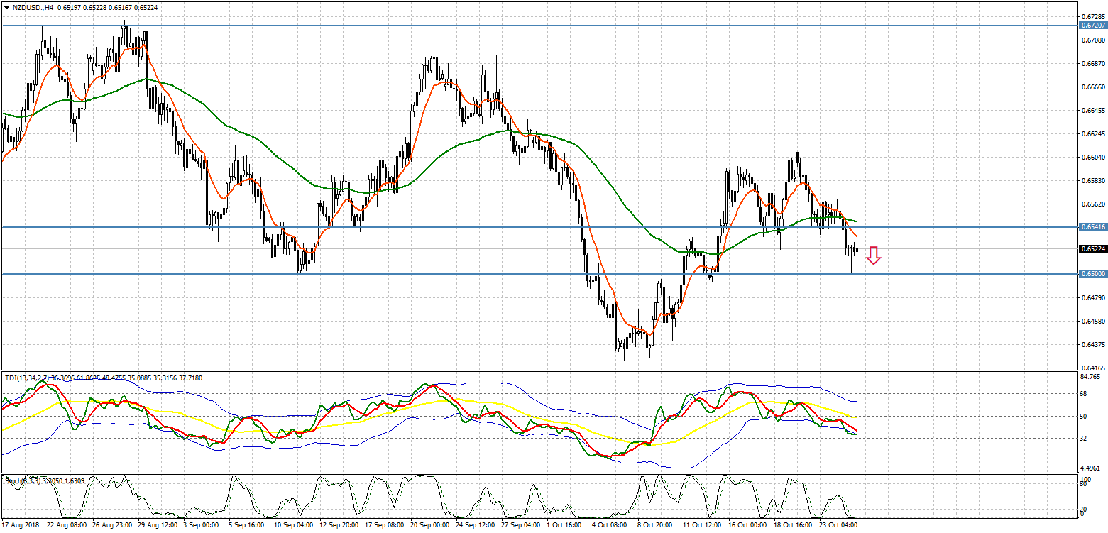 По состоянию на утро, 25 октября, ценовая отметка по валютной паре NZD/USD торгуется в диапазоне 0,6516 - 0,6528. При пробитии уровня 0,6500 открываем продажи.
