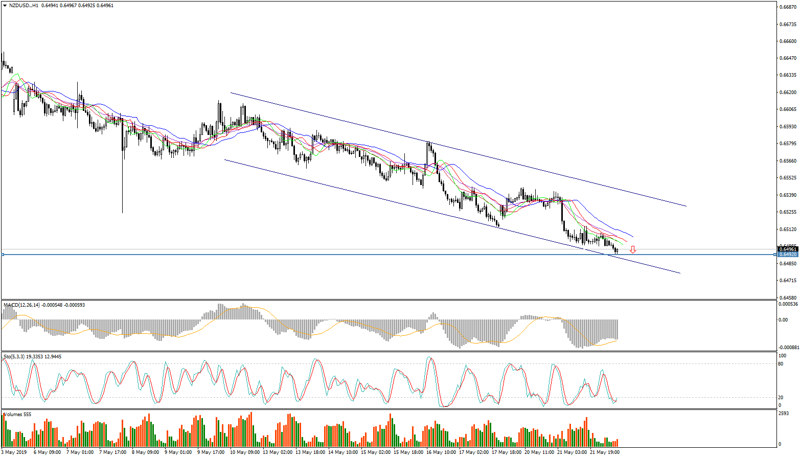По состоянию на утро, 22 мая, ценовая отметка по валютной паре NZD/USD торгуется в диапазоне 0,6492 - 0,6495. Так как глобальная тенденция низходящая, то рассматриваем продажи, входим в рынок после пробития границы торгового диапазона (поддержки) 0,6492.