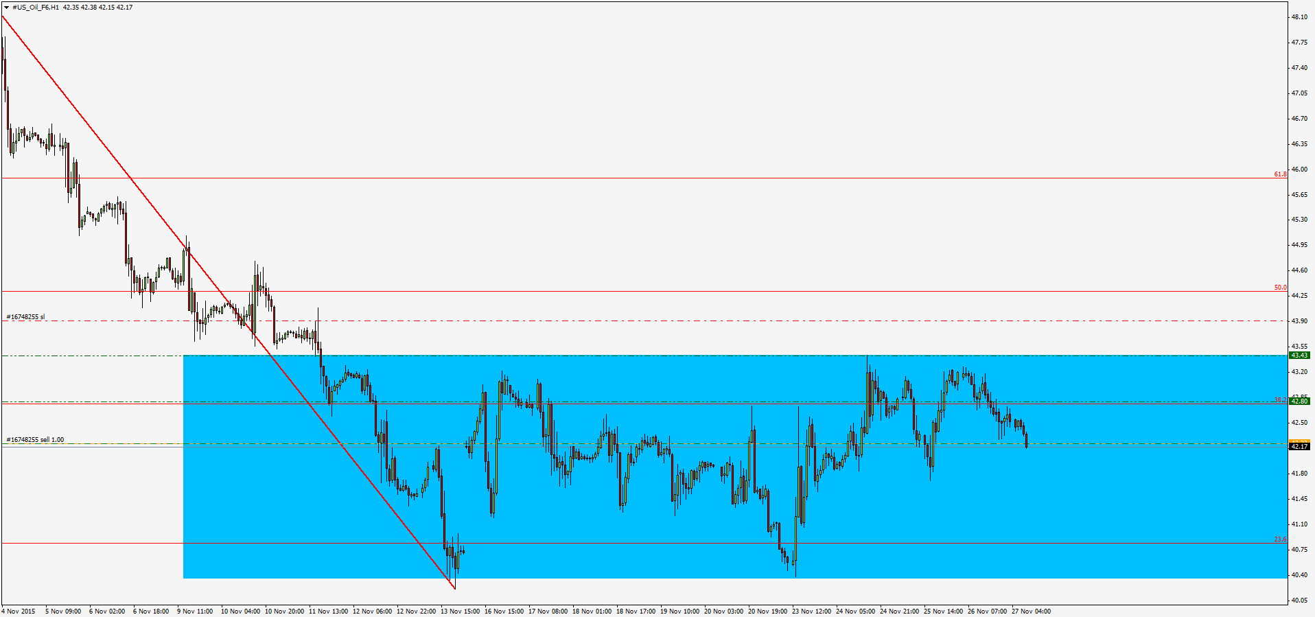 Как и многие валютные пары, нефть продолжает торговаться в консолидации. Точек входа для открытия длинных позиций к сожалению нет. Но присутствует прекрасная возможность рассмотреть продажи внутри дня.