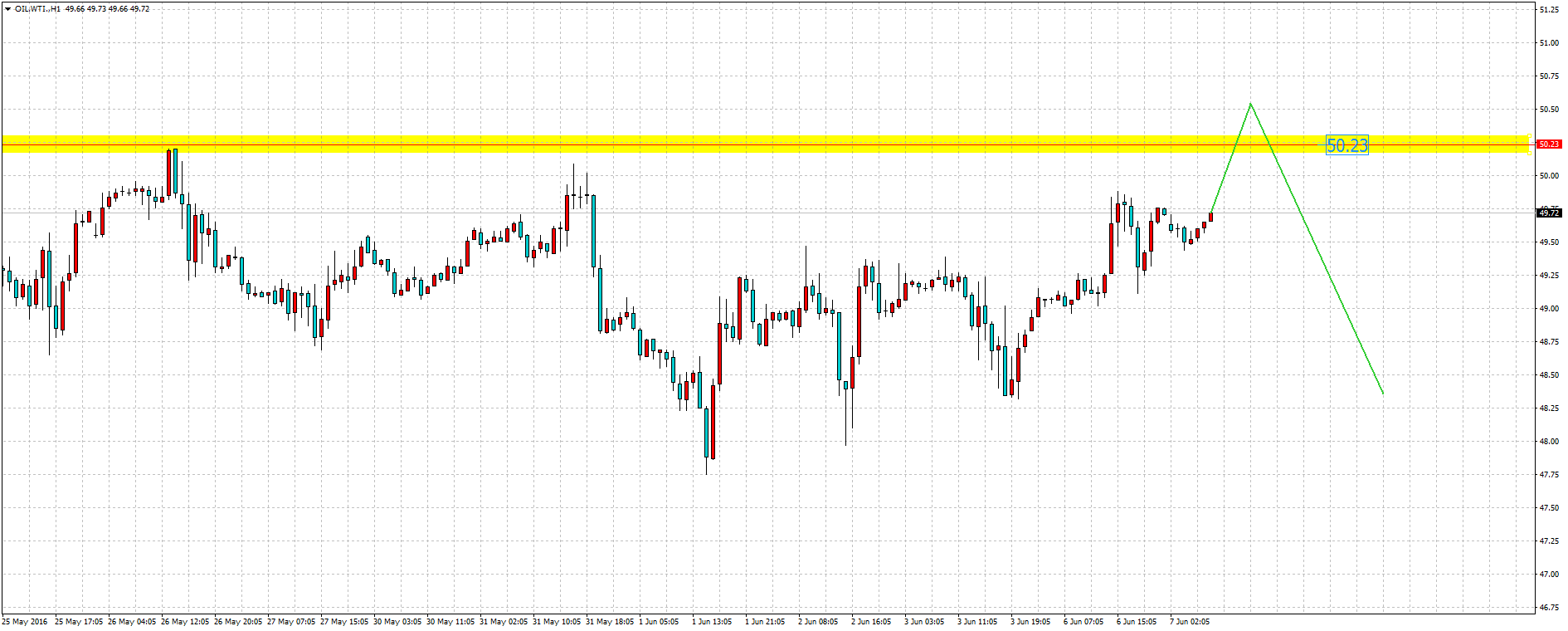 Нефть марки WTI снова приближается к важному уровню поддержки 50.23. Учитывая, что с этих ценовых уровней нефть уже неоднократно встречало объёмное сопротивление со стороны «медведей», складывается хорошая возможность для открытия коротких позиций, со стопом за уровень 50.23.