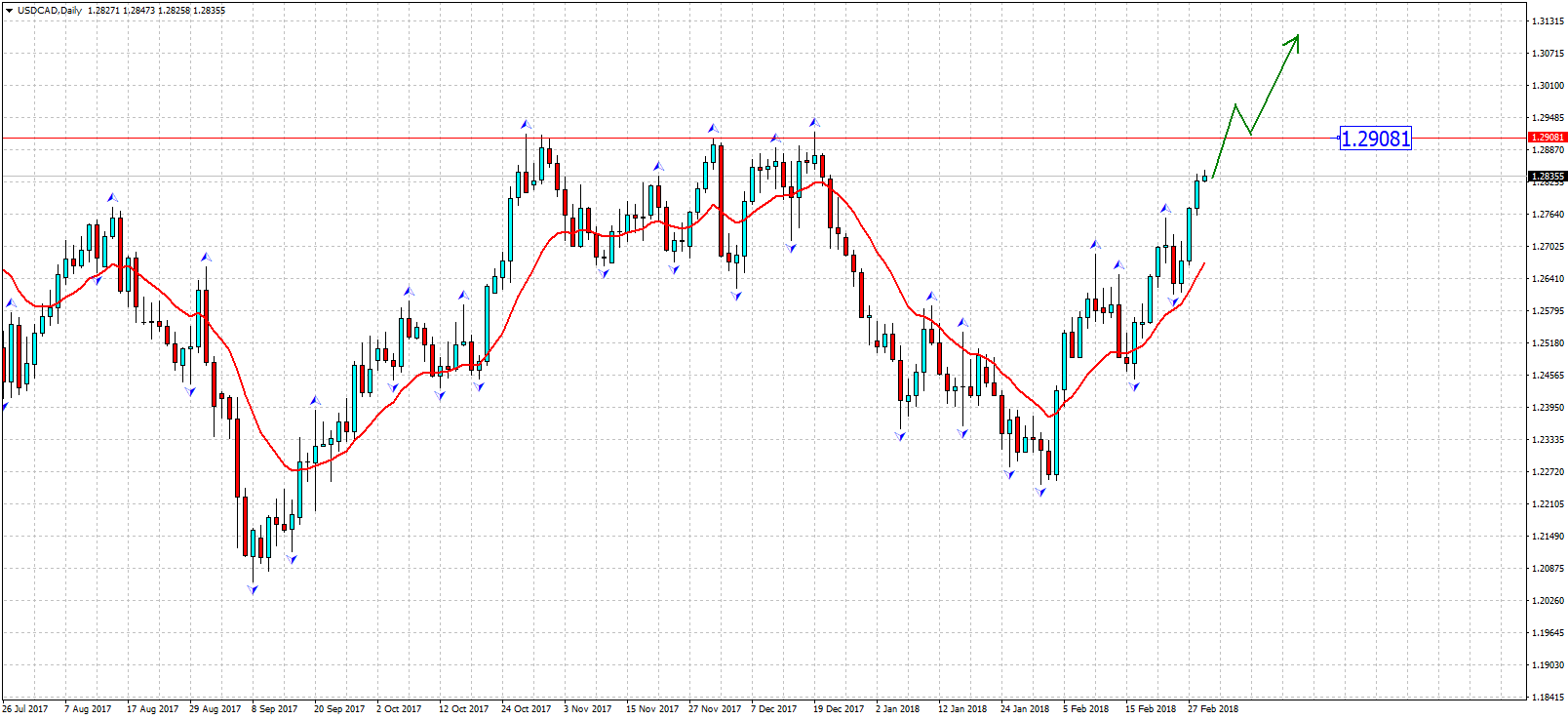По состоянию на утро четверга, USD/CAD вплотную приблизилась в уровню сопротивления 1,2908 и торгуется на отметке 1,2835.