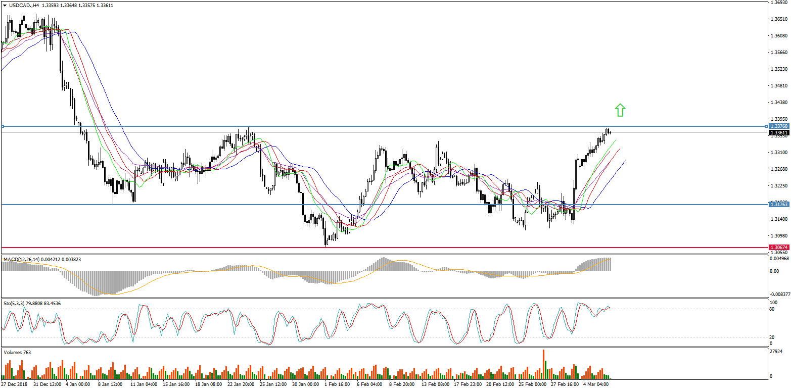 По состоянию на утро, 06 марта, ценовая отметка по валютной паре USD/CAD торгуется в диапазоне 1,3353 - 1,3372. Рассматриваем покупки. Сигналом для входа в рынок, будет пробитие уровня сопротивления 1,3376.