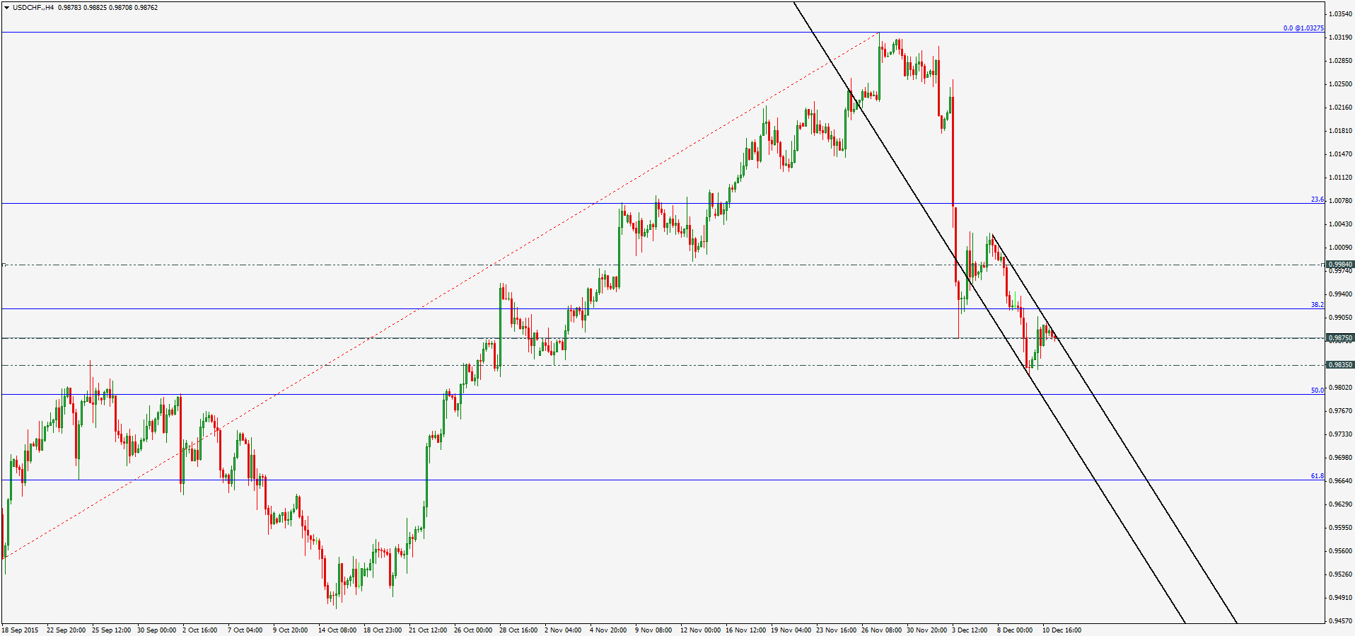 Валютная пара USD/CHF торгуется в нисходящем канале и имеет медвежье настроение. Цена зафиксировалась ниже уровня 38.2 по линиям Фибоначчи а это значит, что перспектива к снижению сохраняется.