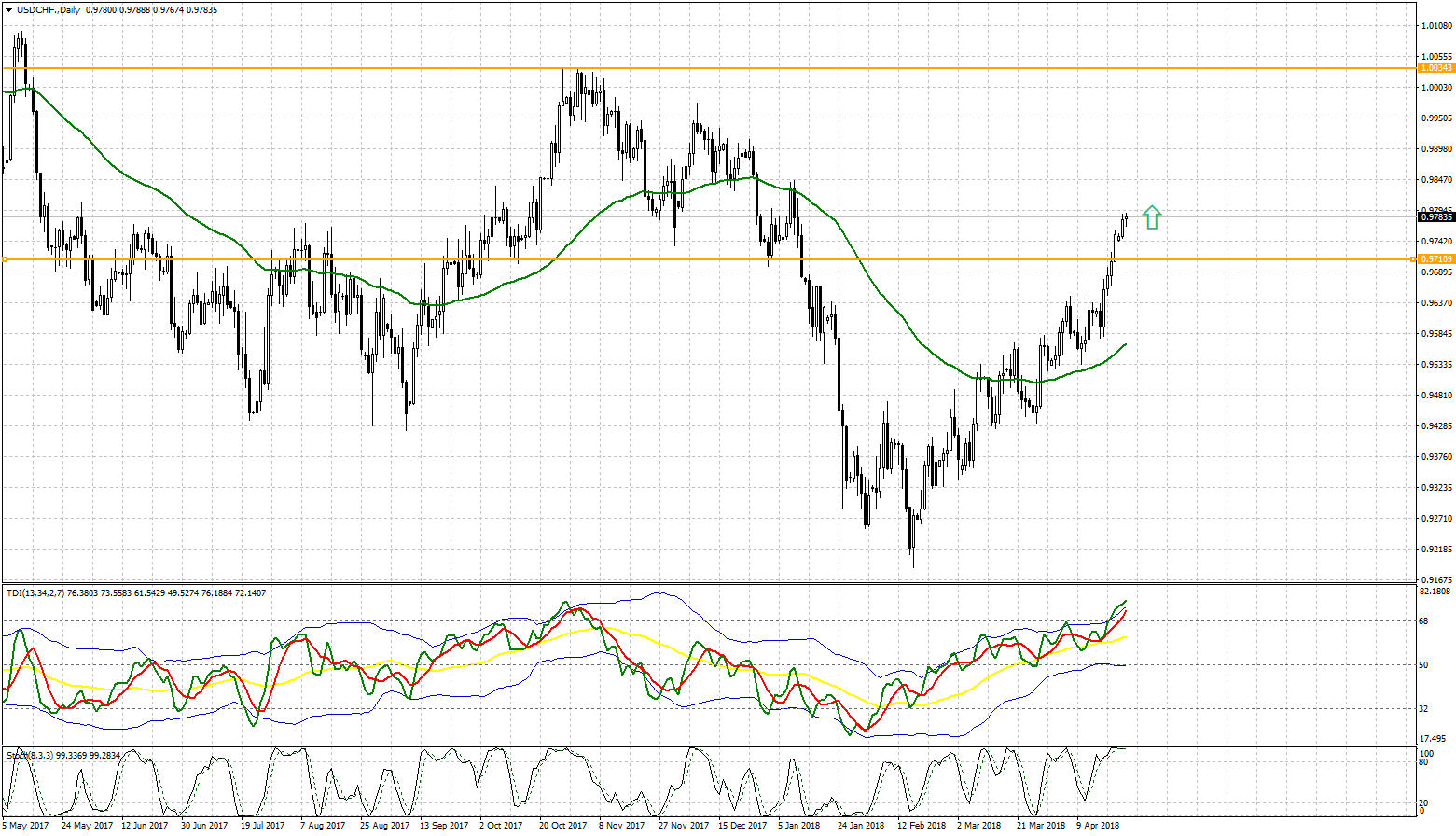 Валютная пара USD/CHF продолжает движение вверх. Как стало известно, торговый баланс в Швейцарии за март месяц составил 1768М, что оказалось значительно ниже прогнозов и показателя за предыдущий период.