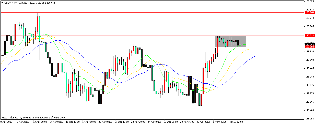 Валютная пара USD/JPY находится в боковом движении между уровнем сопротивления 120,28 и уровнем поддержки 120,00.