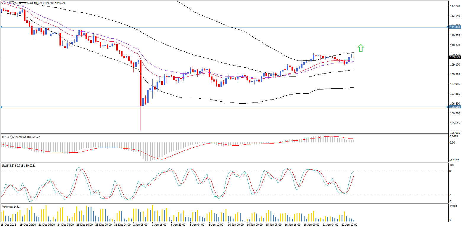 Валютная пара USD/JPY продолжает восходящую тенденцию. Сегодня, ЦБ Японии сохранил процентную ставку без изменений на уровне -0,1%. Дав при этом несколько коментариев касательно будущих прогнозов по монетарной политике, ВВП и инфляции. Как стало известно медианный прогноз реального ВВП Японии на 2019/20 финансовый год составит 0.9%, при этом средний базовый прогноз потребительских цен на 2019/20 финансовый год снижен до 0,9%. Банк Японии также решил продлить схему кредитования до марта, направленную на стимулирование финансовых учреждений к увеличению кредитования и постарается удержать текущие крайне низкие ставки в течение длительного периода времени.