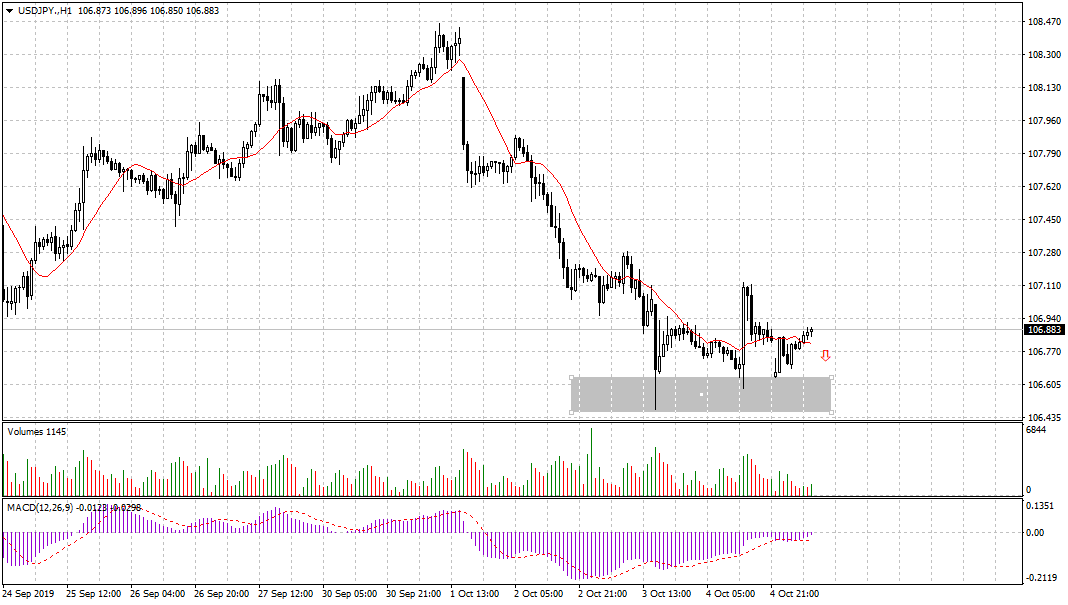 По состоянию на утро, 07 октября, ценовая отметка по валютной паре USD/JPY торгуется в диапазоне 106,83 - 106,89. Ожидаем снижение к грацине ближайшей поддержки. Пробитие диапазона и фиксация цены под ним будет являться сигналом к открытию сделок на продажи.