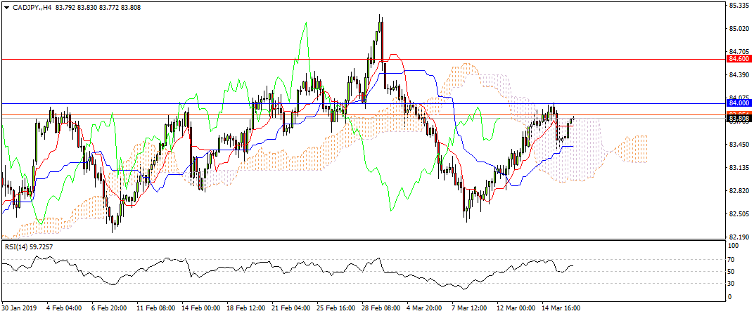 Технические индикаторы Ichimoku (цена находится в облаке, линия краткосрочного тренда Tenkan и линия среднесрочного тренда Kijun двигаются горизонтально) и RSI (выше уровня 50). Рассматриваем покупки после выхода цены с облака и пробития 84.00. Цель для роста 84.60.