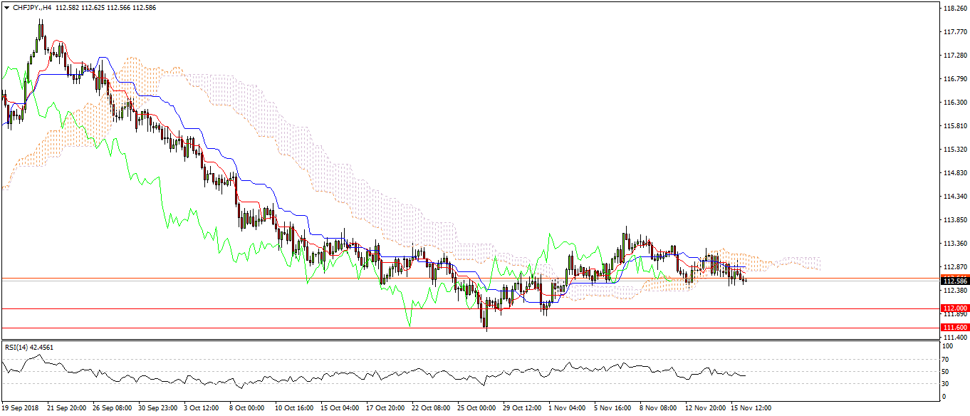 Технические индикаторы Ichimoku (цена ниже облака, линия краткосрочного тренда Tenkan направлена вниз, а линия среднесрочного тренда Kijun двигается горизонтально) и RSI (находится ниже уровня 50). Рассматриваем продажи с текущих цен. Цели для снижения уровни 112.00 и 111.60.